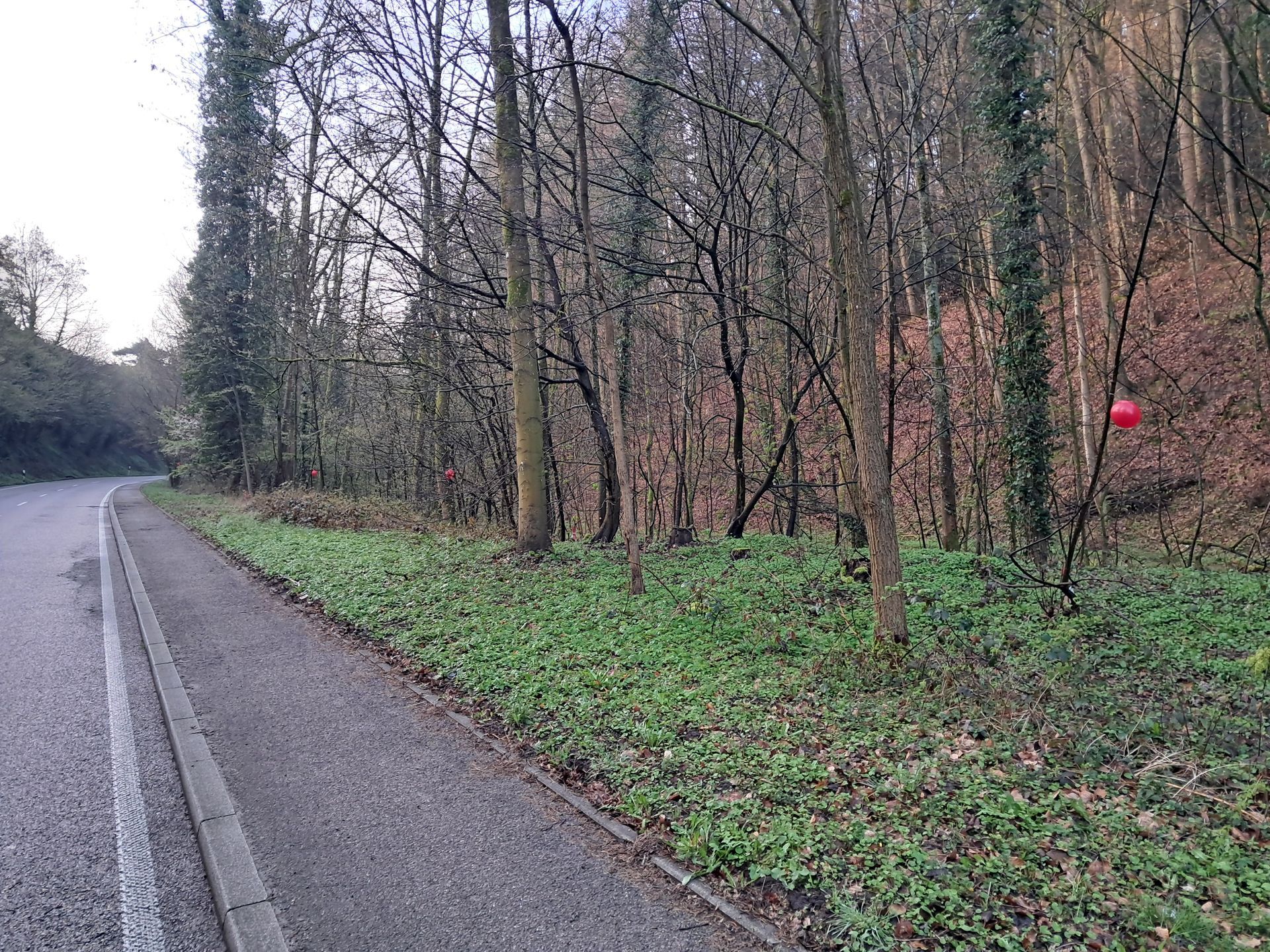 Rote Luftballons makieren den Verlauf der Baumfällungen und